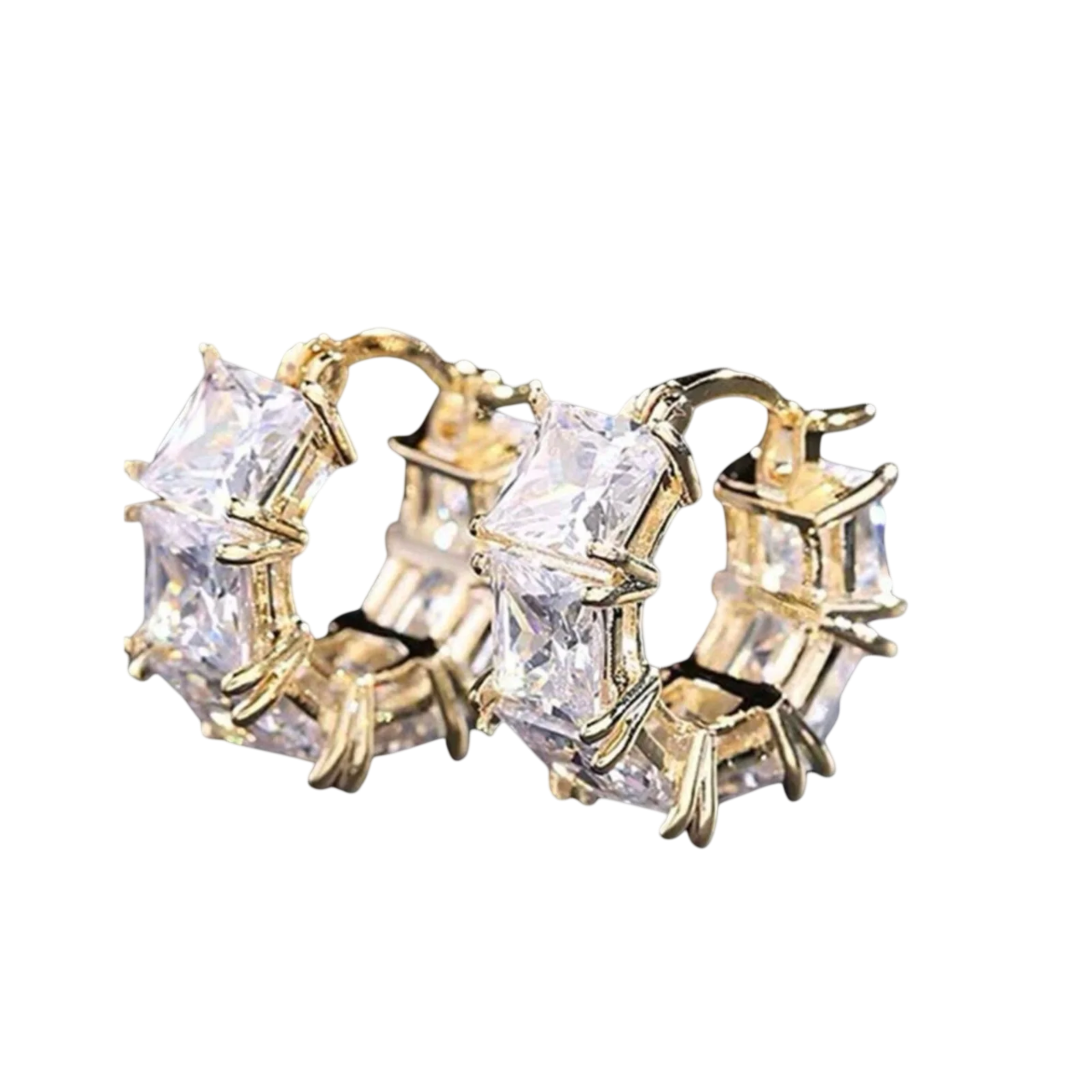 A breathtaking pair of earrings designed to captivate and dazzle. Each earring boasts a large, multifaceted crystal centerpiece that sparkles with every turn, catching the light in a cascade of radiant colors. Surrounding the centerpiece are smaller, meticulously cut stones arranged in a timeless pattern, adding depth and elegance. These earrings are substantial yet balanced, making a bold statement while remaining sophisticated. Perfect for grand events or elevating any formal ensemble, they exude luxury and grace.