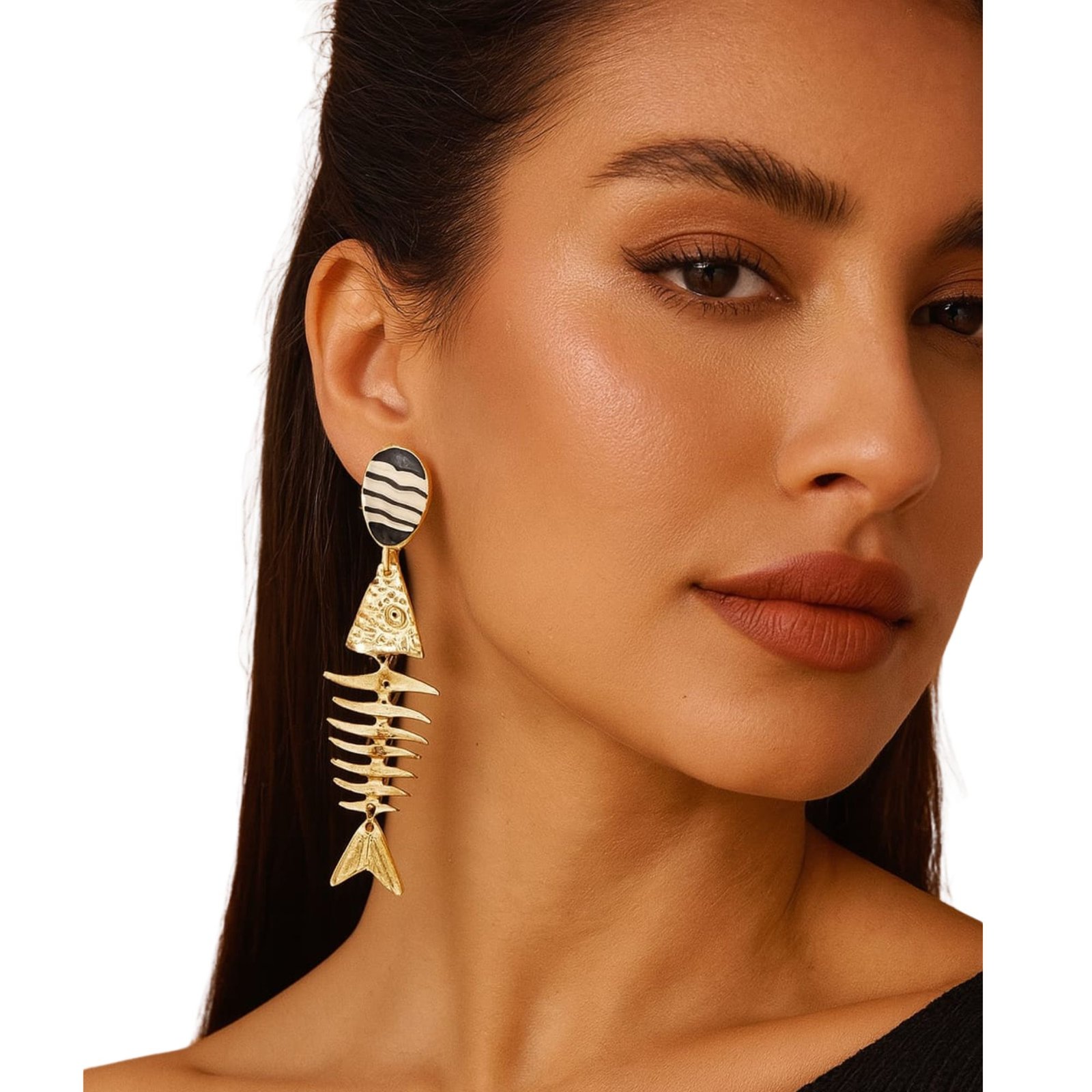 Make a splash with these playful fishbone drop earrings, featuring gold-tone skeletons dangling from striped enamel studs. With their whimsical design and bold movement, these earrings are a perfect conversation starter—ideal for coastal vibes, vacation outfits, or anyone who loves a touch of ocean-inspired humor in their style.