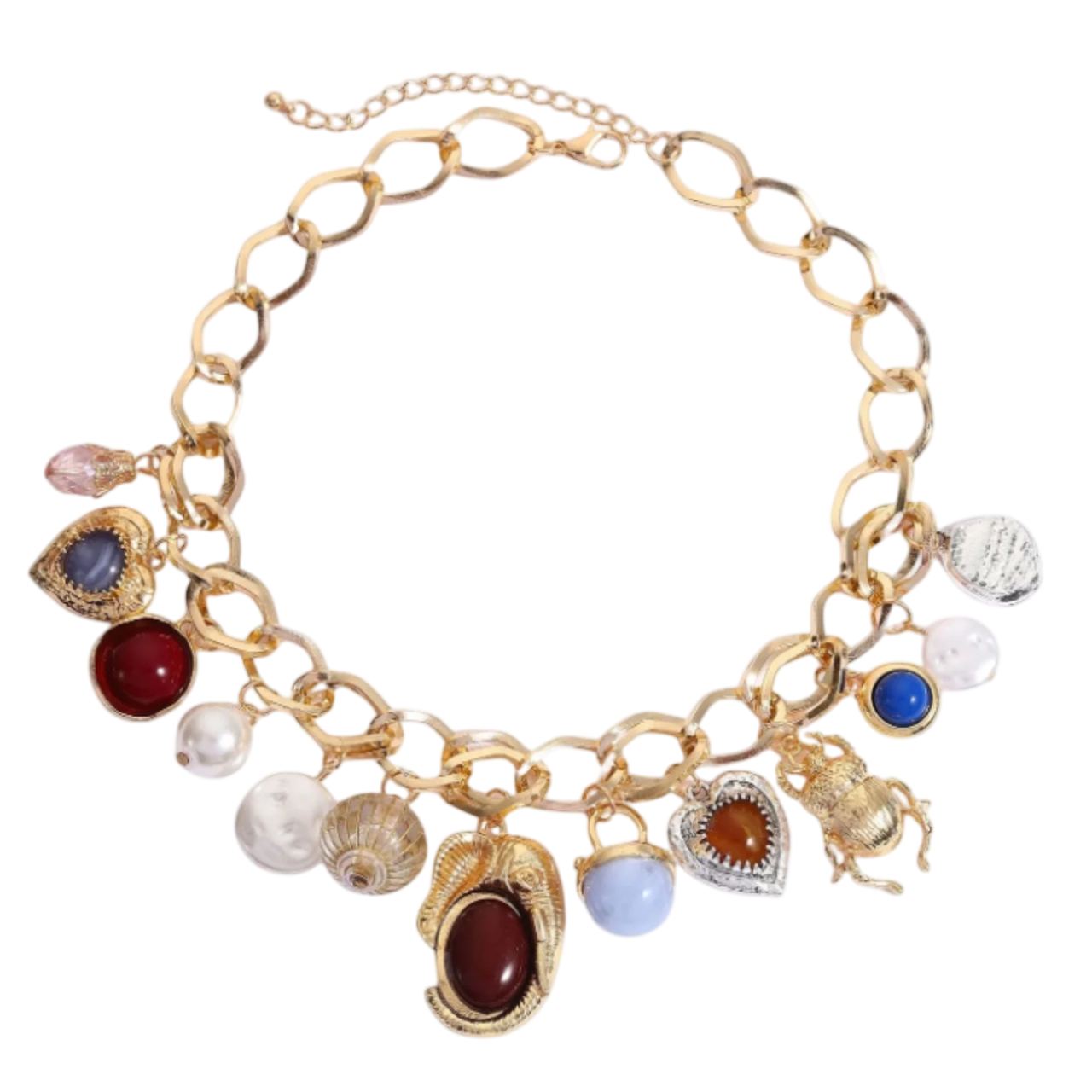 The Dora Charm Necklace is a playful yet elegant piece that captures personality and charm in every detail. Adorned with delicate, thoughtfully designed charms, it brings a touch of whimsy and sparkle to your look. Perfect for layering or wearing alone, this necklace adds a stylish, feminine accent to both casual and dressy outfits.