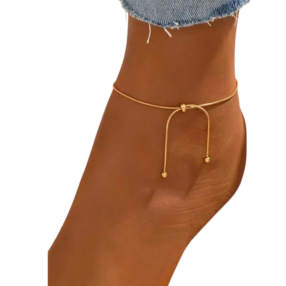 The Drip Anklet features a sleek, fluid-inspired design that adds subtle movement and radiant shine to your look. Its smooth curves and polished finish create a modern, minimalist statement that beautifully highlights the ankle.