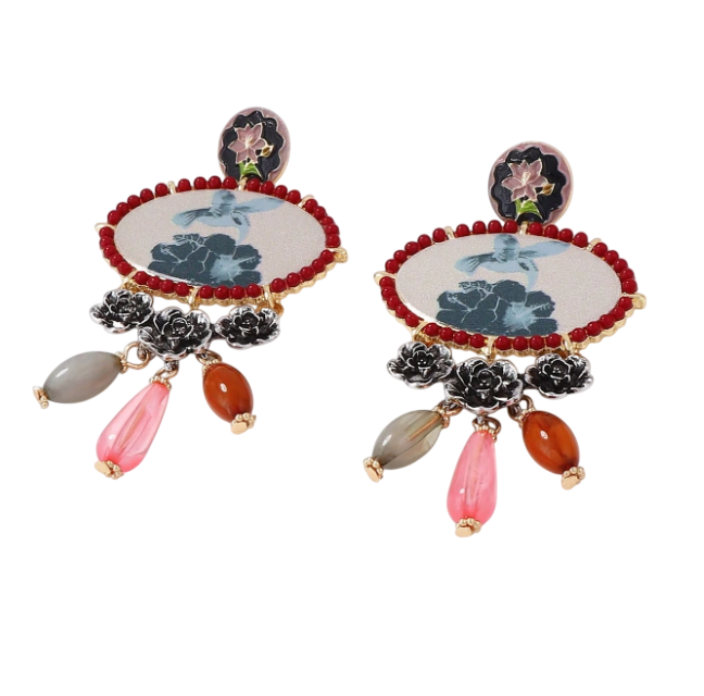 The Cloisoné Drop Earring showcases intricate artistry with its beautifully detailed design and graceful drop silhouette. Inspired by the traditional cloisoné technique, it brings a unique blend of color, texture, and refined craftsmanship.