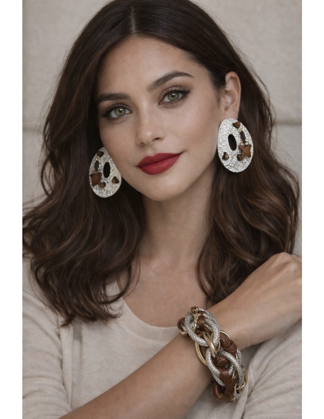 Designed as post earrings for secure wear, these statement pieces are ideal for ears that can comfortably handle a bit of weight, offering presence without compromising balance. The dimensional oval silhouette frames the face beautifully, catching light from every angle while maintaining a refined, modern feel.