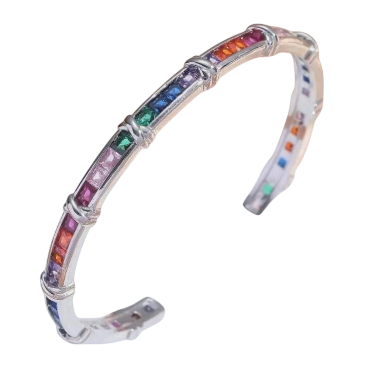 The Rainbow Twist Crystal Bangle shines with vibrant charm and radiant color. Its twisted design, adorned with multi-colored crystals, creates a dazzling play of light that instantly brightens any look. Crafted for comfort and durability, this bangle adds a joyful, stylish touch to both casual and dressy outfits. A perfect piece for those who love bold sparkle with a playful twist.