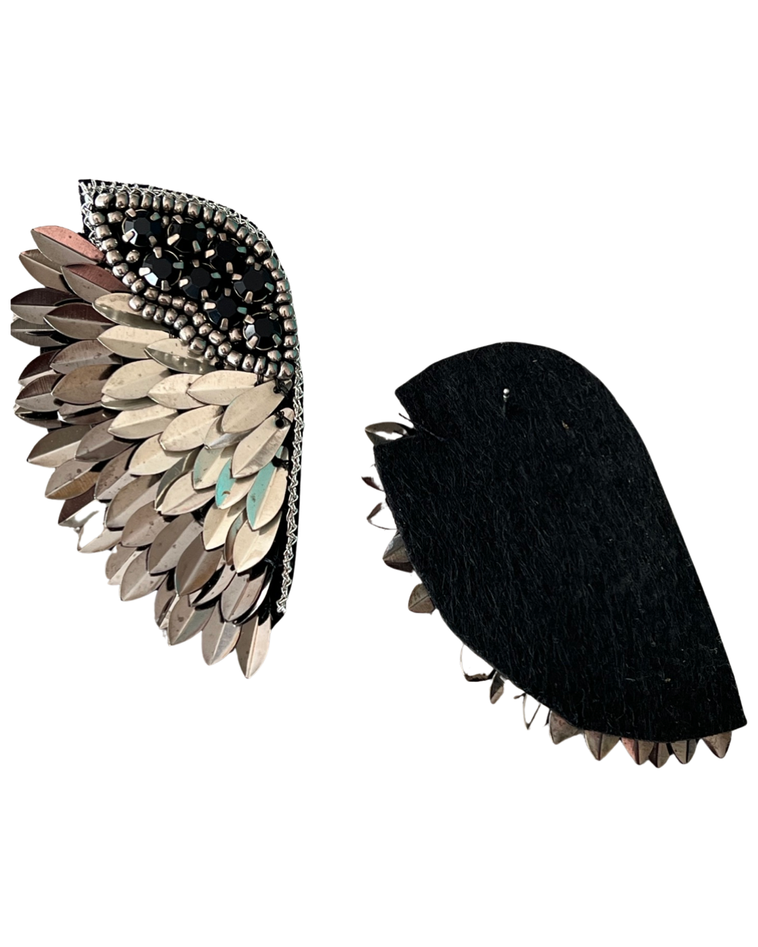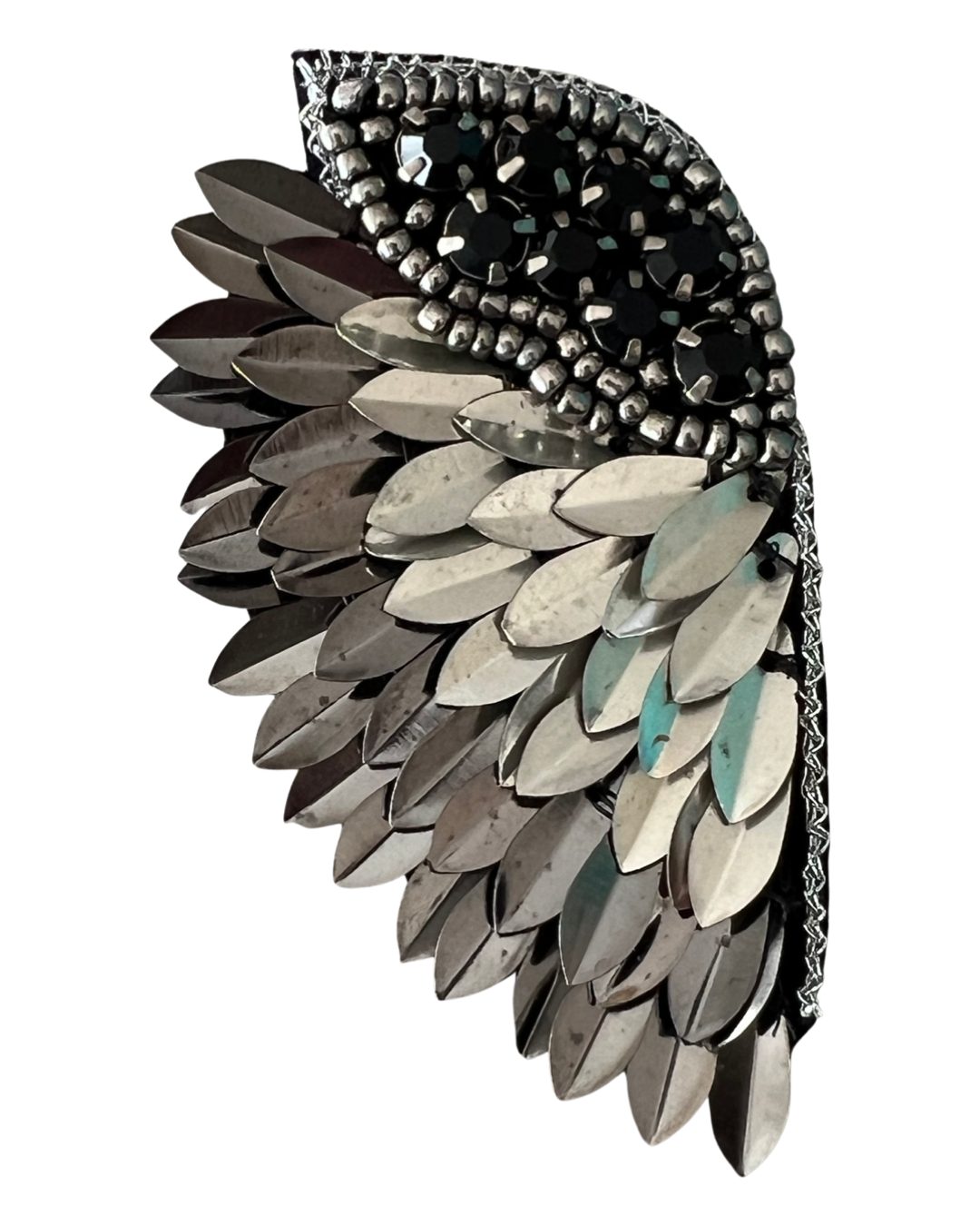 For all of those that love that extra bit of edge. Our handmade sequin Angel Wings encrusted in w Black Diamond Crystals.