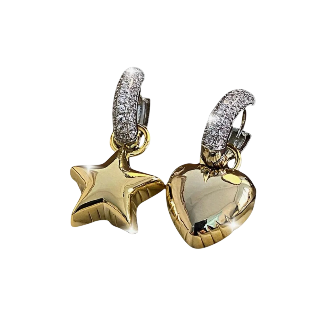 Add a playful twist to your jewelry collection with these adorable mini charm hoop earrings! Featuring one dainty heart charm and one shining star charm per ear, these mix-and-match designs are perfect for expressing your unique style. Crafted with a sleek and lightweight hoop base, these earrings are super comfy for all-day wear. Their minimalist yet trendy design makes them the ultimate accessory for dressing up or down. A must-have for anyone who loves a touch of whimsy in their look! Perfect as a gift or to treat yourself! ✨❤️⭐