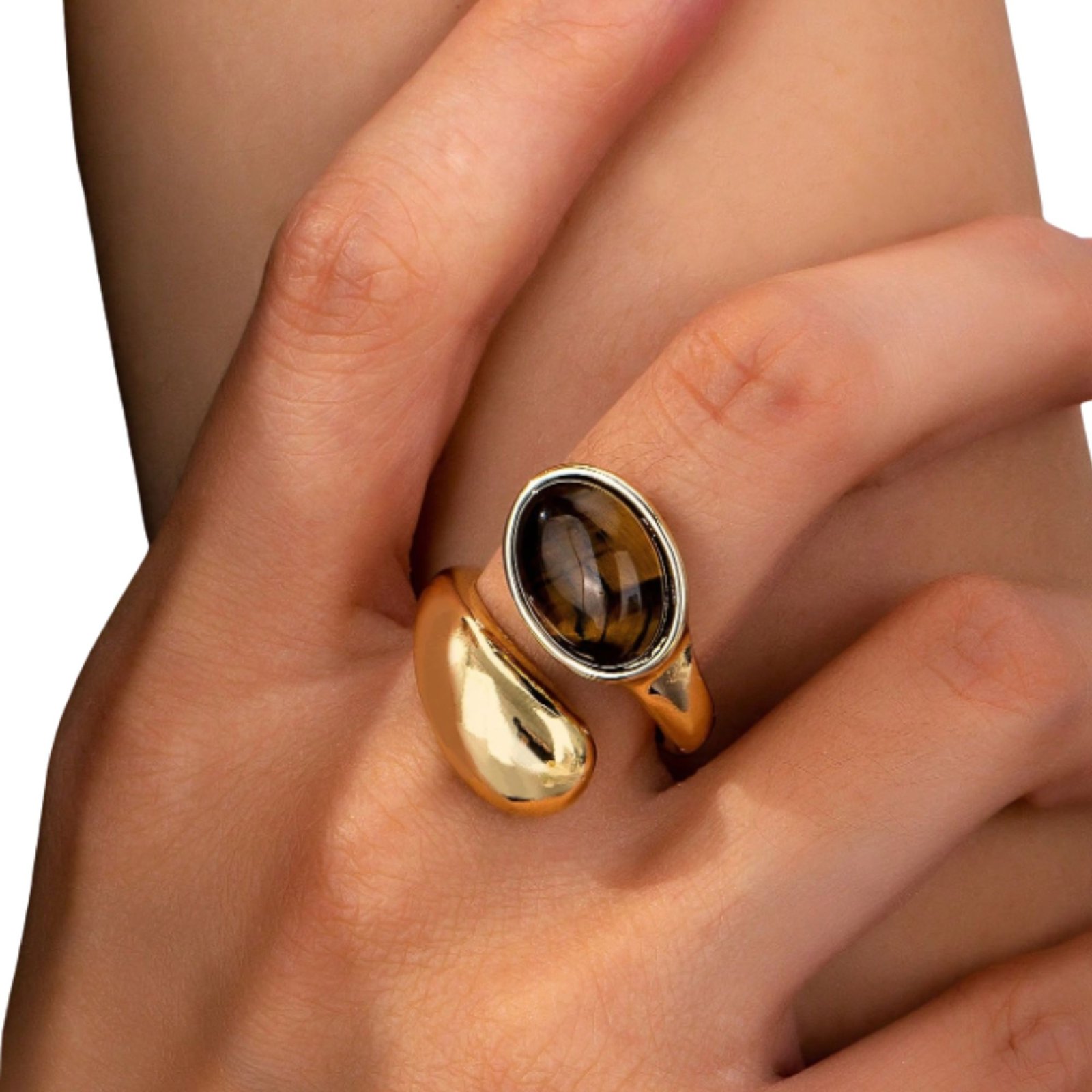 The Tiger Wrap Ring brings bold, untamed elegance to your jewelry collection. Designed with a sleek, sculpted tiger motif that wraps naturally around the finger, it captures both strength and sophistication. Its polished finish and detailed features make it a true statement piece. Perfect for adding a fierce, stylish edge to any outfit.