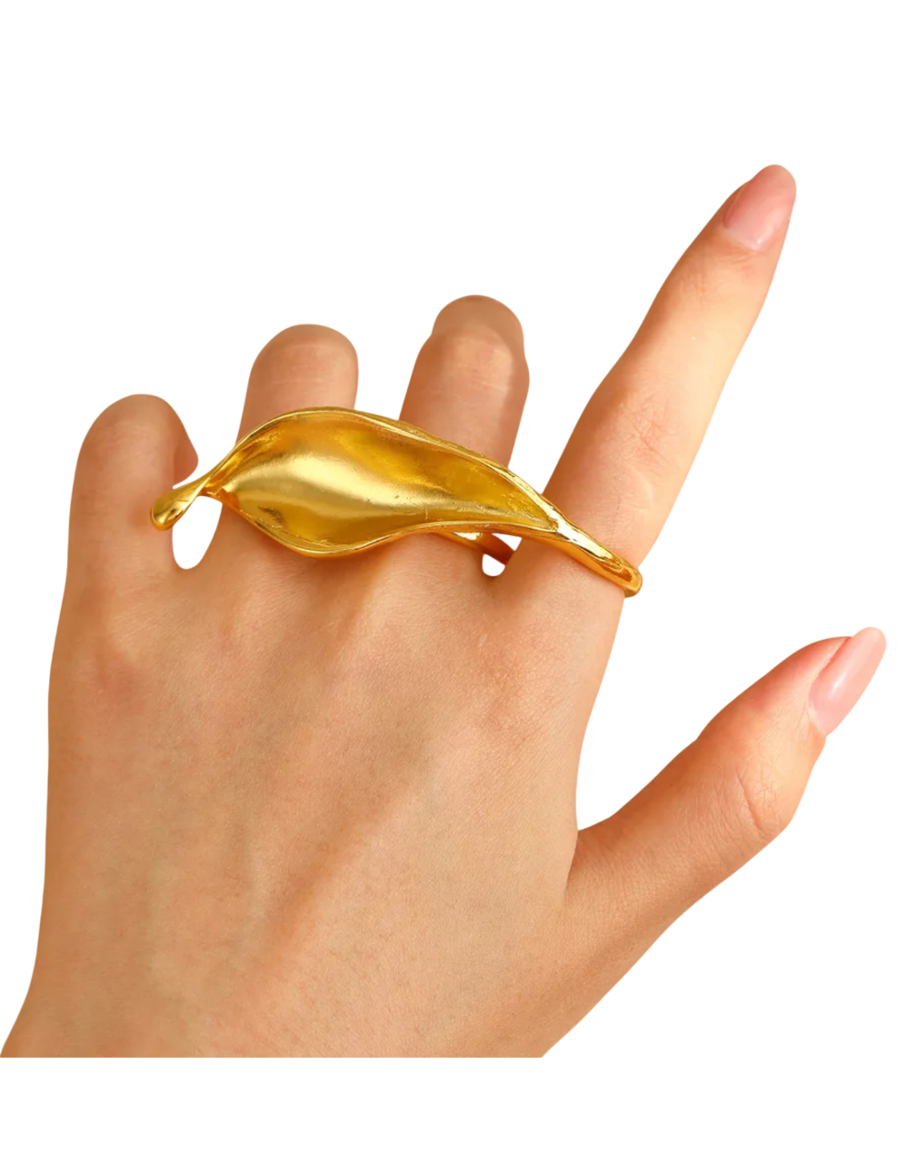 - Make a statement with this dramatic gold-tone ring inspired by the graceful curves of a leaf.