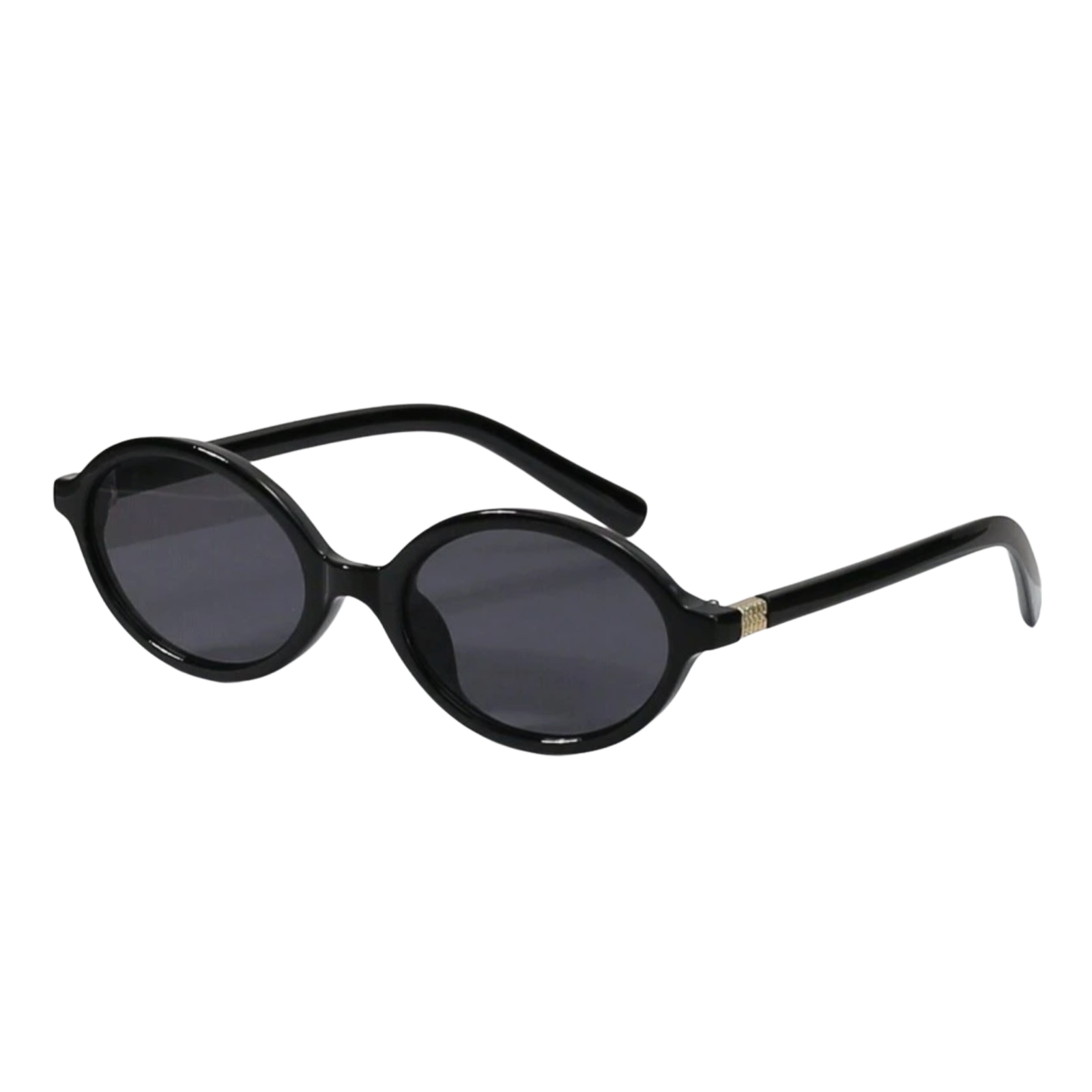 These sunglasses have a bold, retro-inspired design with thick, glossy black round frames. The dark-tinted lenses provide UV protection, while the small gold detail on the temple adds a touch of sophistication. Perfect for making a stylish statement, they blend vintage flair with modern edge.